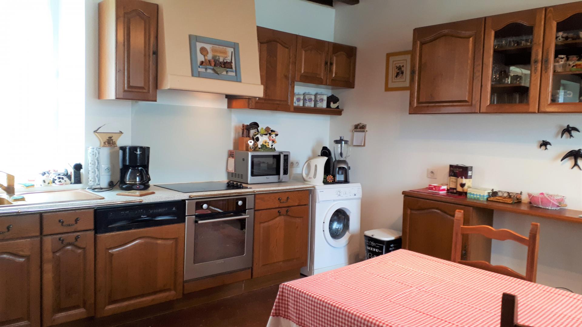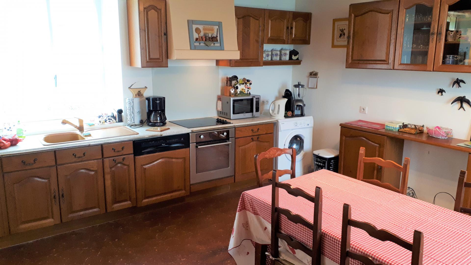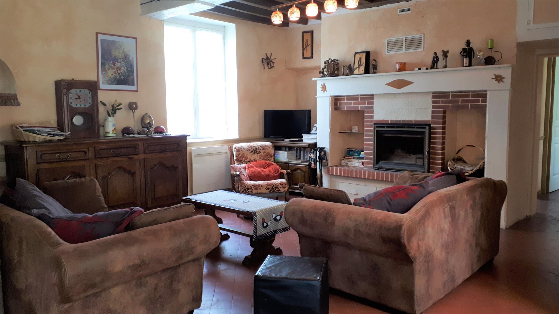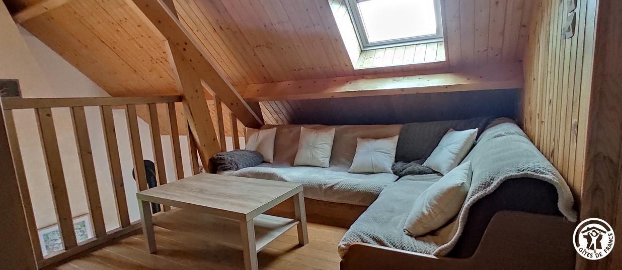 Ce gîte est aménagée en rez-de-chaussée, vous entrez dans la pièce de vie composée d'un salon ouvert sur la cuisine équipée avec coin repas.