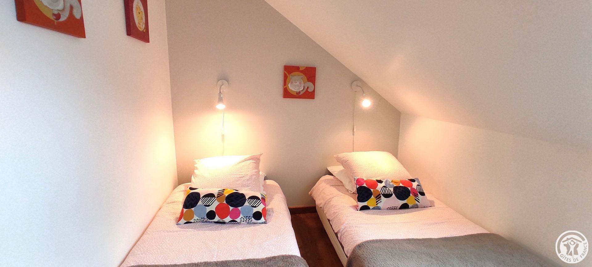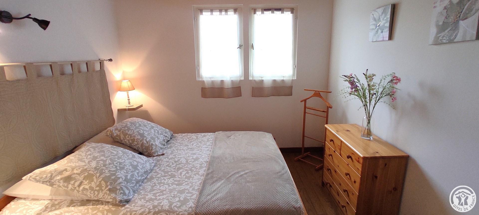 Gîte indépendant de caractère, sur 2 niveaux. Séjour avec canapé convertible. A l'étage : 2 chambres (1 lit 2 personnes - 1 lit de 2 personnes et 2 lits 1 personne).